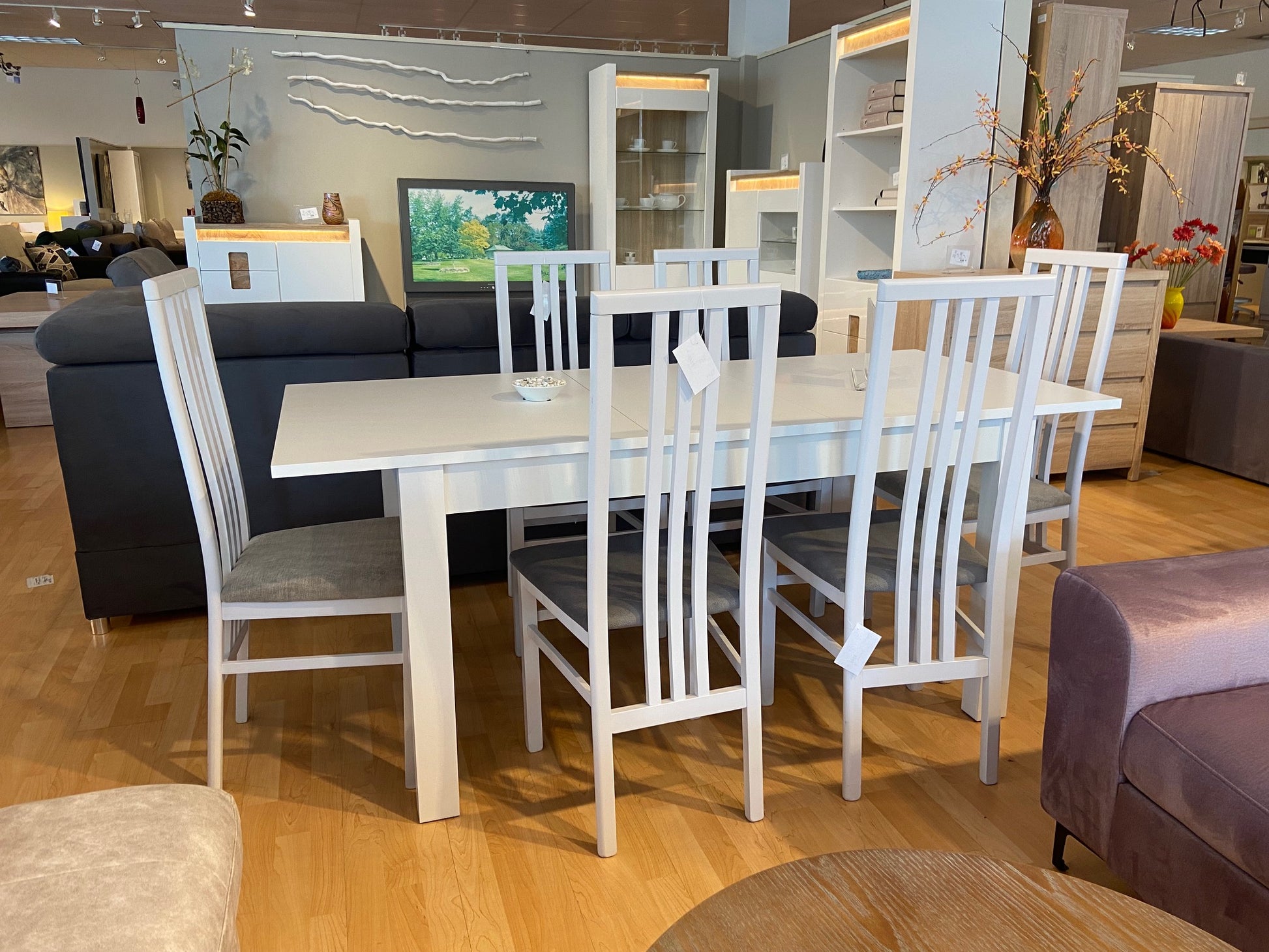 BRYK White Dinning extended table & 4 Trio II Chairs
