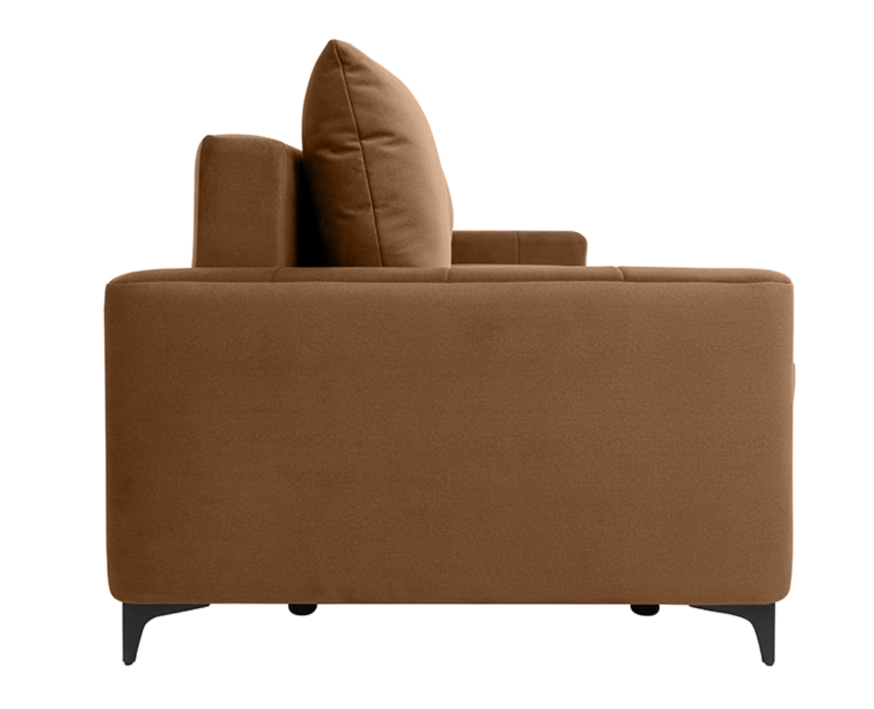 Notice the sofa’s symmetrical, decorative design. Soft backrest cushions and two decorative pillows are both aesthetic and practical — perfect for resting your back. Armrests provide stable support for the arms, while decorative stitching and black metal legs complete the look.