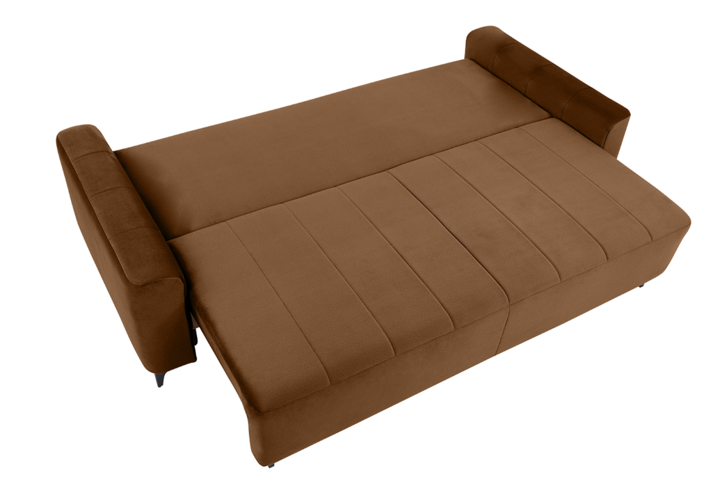 Thanks to its compact dimensions it is suitable even for smaller spaces, while its filling ensures full comfort. Zigzag springs and foam in the seat and backrest provide softness and a pleasant experience. Transforming this three-seater sofa into a spacious bed takes only a moment thanks to the lift-assisted folding mechanism.