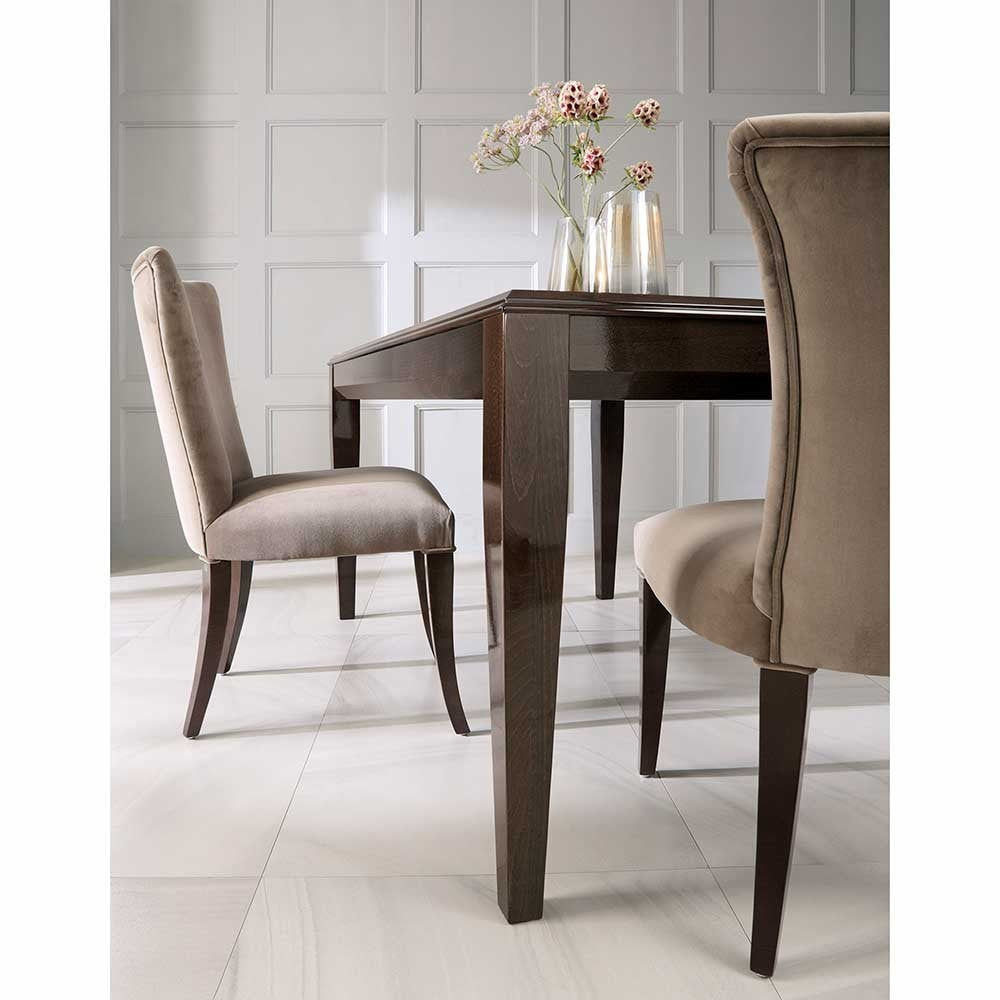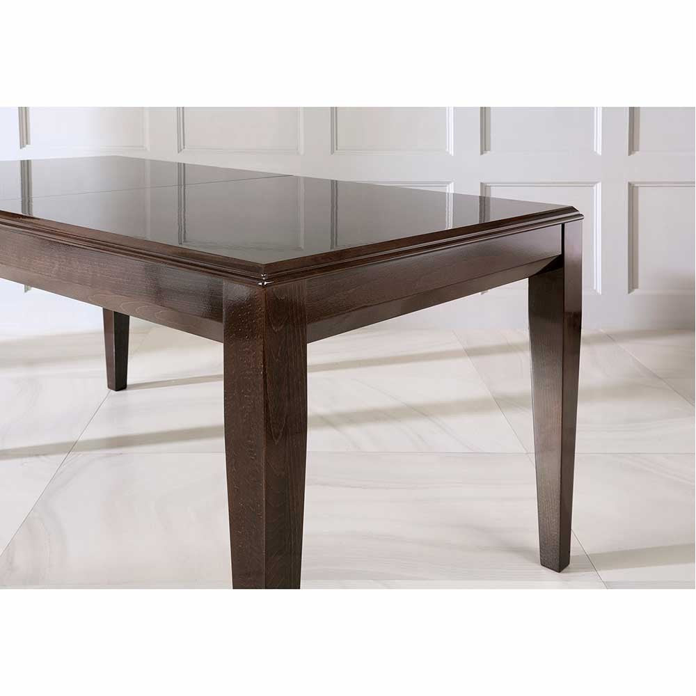Simple form, subtle elegance; The Emma table is a modern classic for those who like furniture that offers great arrangement possibilities, this universality is an unquestionable advantage of the Emma table. Its minimalist form gains class thanks to the coloring in a shade of cool brown refined with a high gloss. The table is perfect for everyday use, and when unfolded, it can accommodate a large group of friends or family, you can celebrate all the most important moments with it - comfortably and with class. The table is available in several sizes.