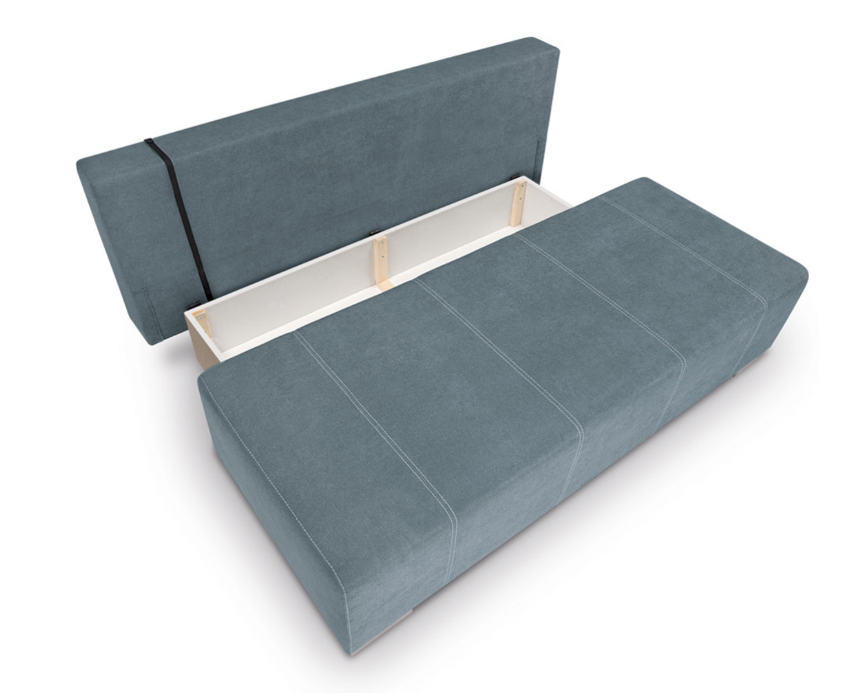 A smooth-operating mechanism allows the sofa to be unfolded quickly and effortlessly. The backrest is attached with metal brackets, and the spacious storage compartment can hold all your bedding essentials.